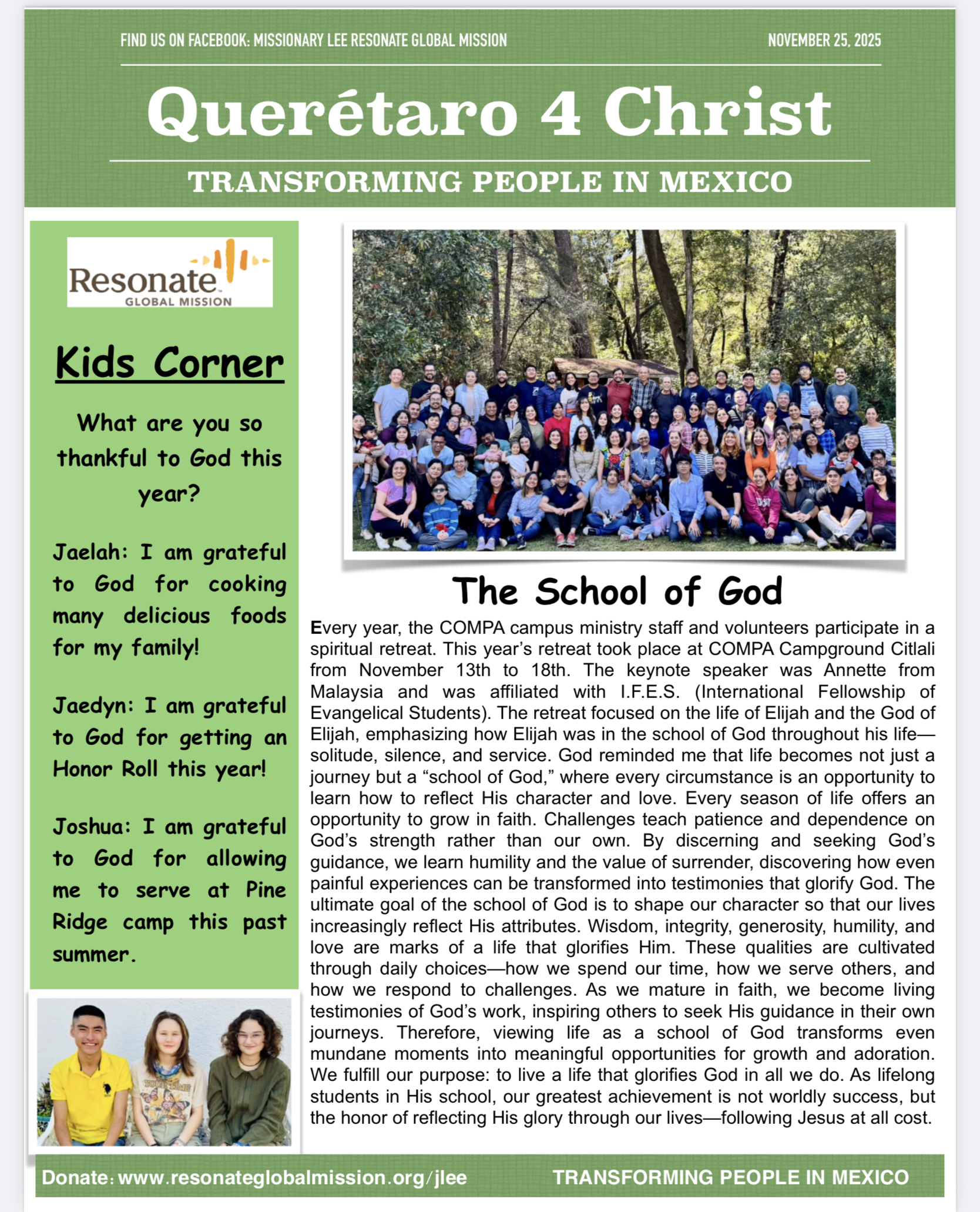 The Lee newsletter for the month of November 2025